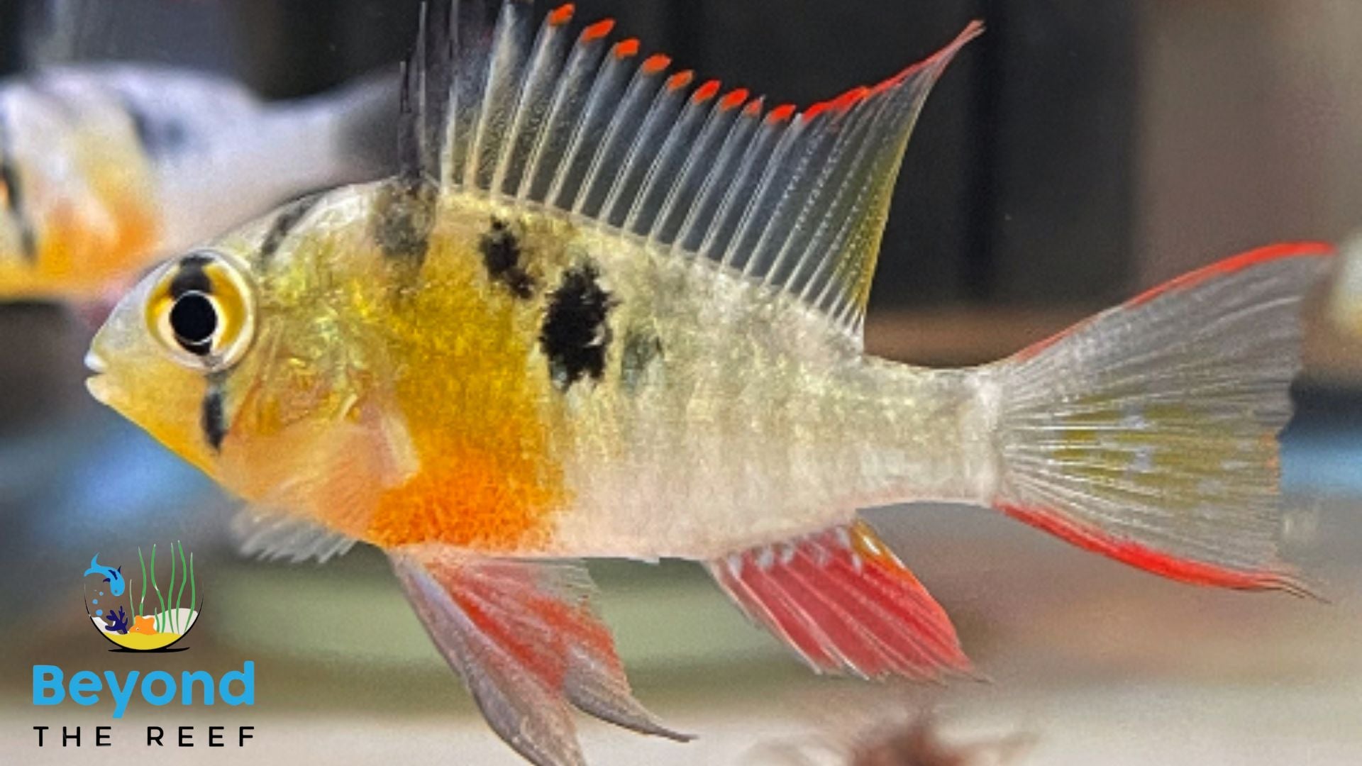 The Bolivian Butterfly is a colorful, tiny fish with pointed fins and tail that has an extended oval body. Compared to females, mature males have longer filaments on their tail fin and a tip at the end of their dorsal fin. The entire body is a silvery-grey color.