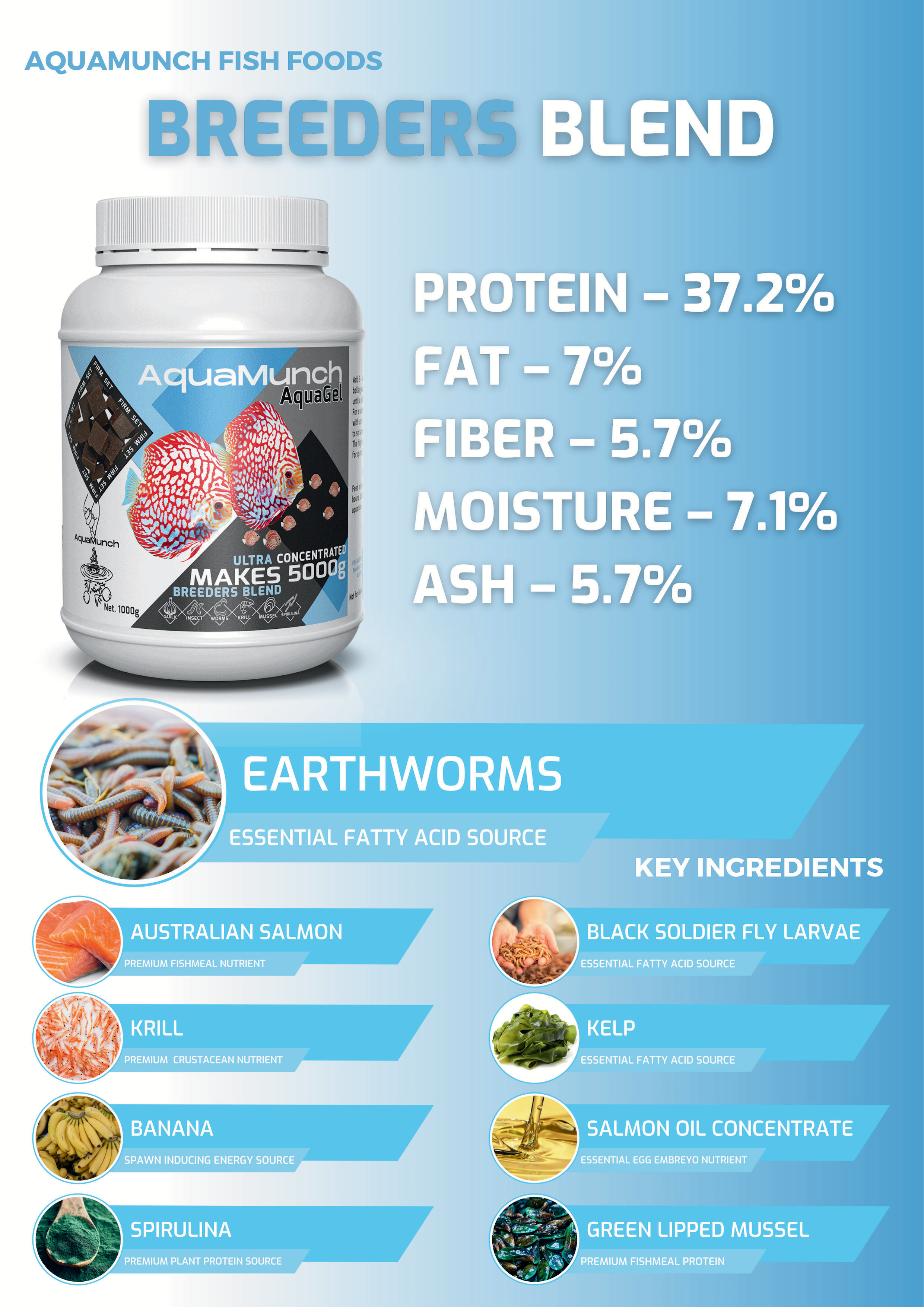 Breeders Blend is a premium formula tailored for adult female fish to enhance spawning success. It ensures optimal embryo nutrition, leading to more viable eggs and fry with robust yolk reserves. This specialised blend supports higher fertility and healthier offspring. Ideal for breeders aiming for superior spawning outcomes.