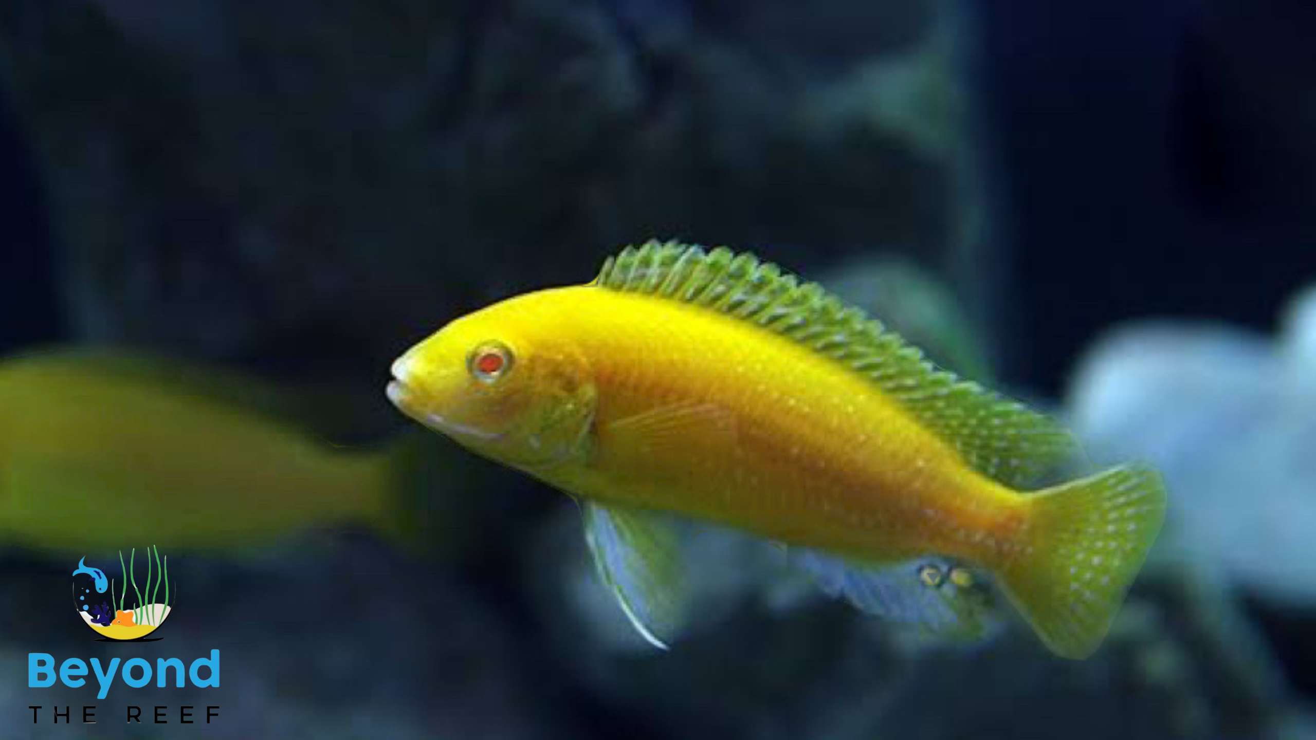 Enhance the vibrancy of your aquarium with the Electric Yellow Albino African Cichlid! This striking variant, measuring between 5-7cm, adds a touch of elegance with its pale yellow or white body and captivating red eyes.