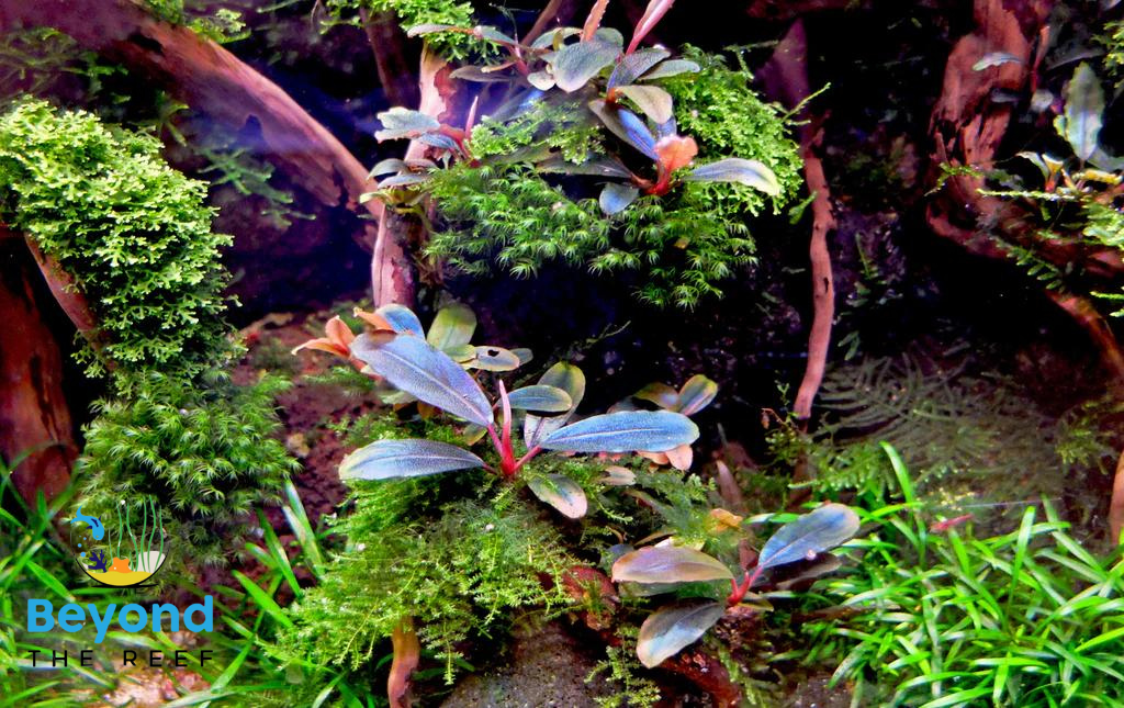 Imagine the tranquility of your aquatic paradise with the Large Bucephalandra Lamandau gracefully swaying in the gentle currents, creating a serene and harmonious environment for your aquatic inhabitants.