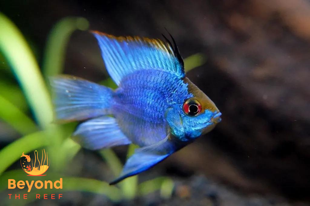 The Blue Balloon Ram is a visually stunning variant of the Ram cichlid, named for its vibrant blue coloration and rounded, balloon-like body shape. This peaceful fish is native to the warm, slow-moving waters of South America and is a favorite among aquarists due to its gentle temperament and striking appearance. The Blue Balloon Ram thrives in well-planted aquariums with stable water conditions, making it a beautiful addition to community tanks. Its unique body shape and vivid colors add a dynamic visual element to any aquatic setup.