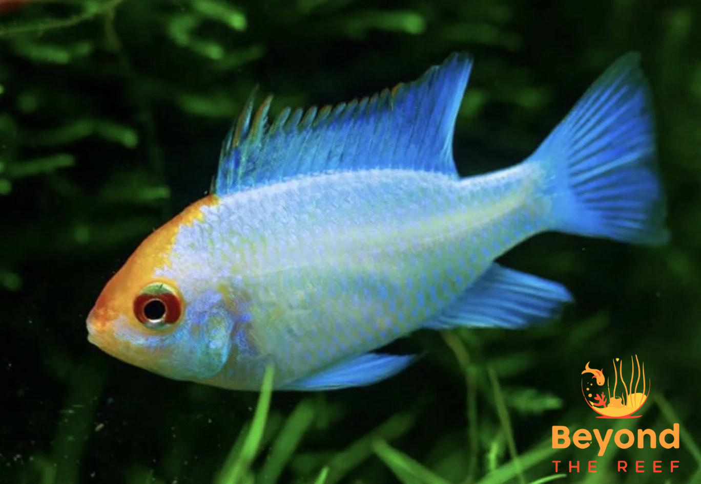 The Neon Blue Golden Head Ram is an exquisite cichlid that features a striking blend of vibrant neon blue body coloration with a golden head, creating a stunning contrast. Originating from South America, this peaceful fish is a favorite among aquarists for its unique and vivid appearance. The Neon Blue Golden Head Ram thrives in warm, well-maintained aquariums with soft water and plenty of plants, allowing it to showcase its brilliant colors. Its calm demeanor and striking beauty make it a highly sought-after addition to community tanks, where it adds a touch of elegance and color.