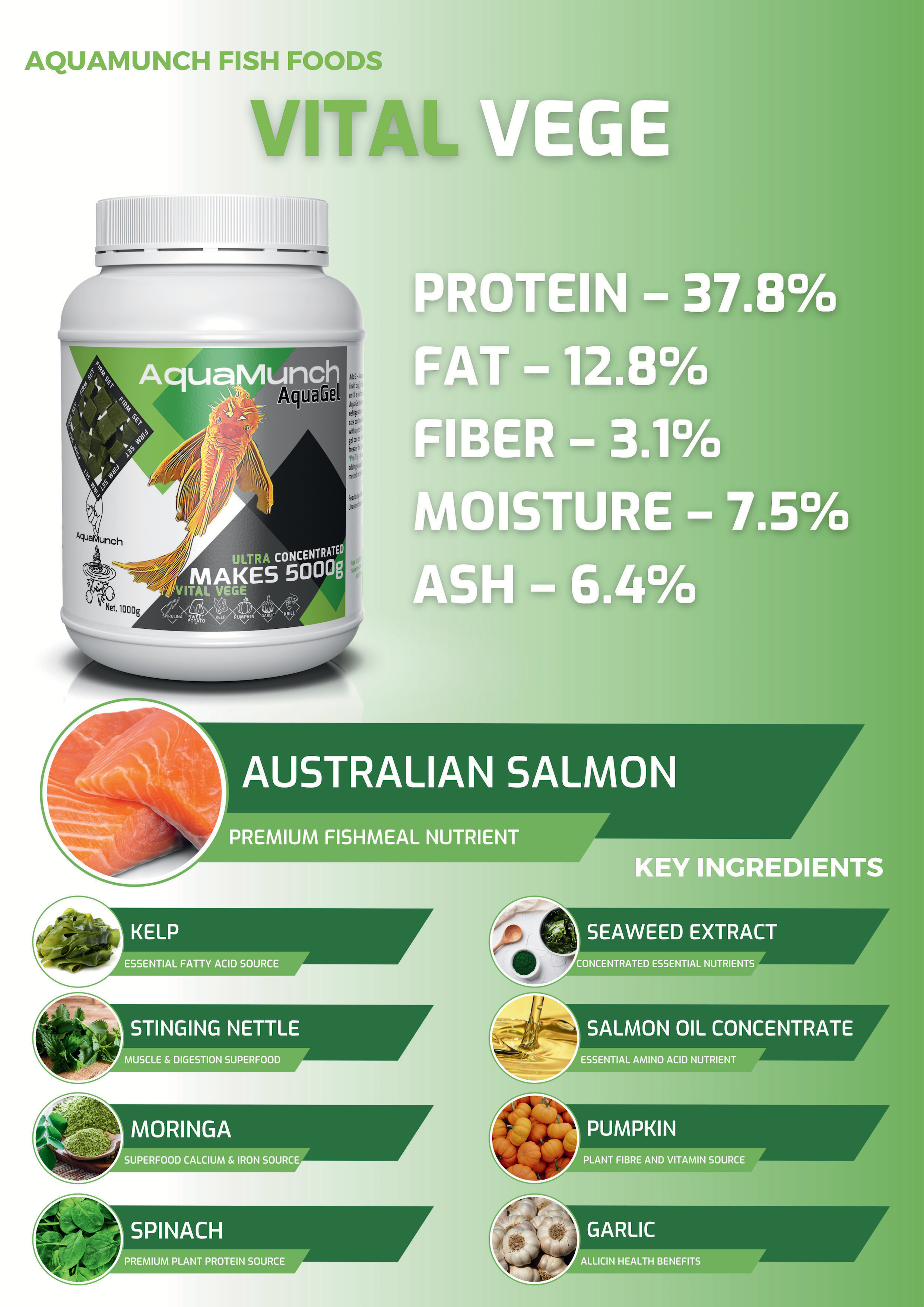 Vital Vege is a specialised formula for herbivorous fish, packed with nutrient dense plant-based ingredients. It features superfoods like spirulina and chlorella to maximise health benefits and vibrant colouration. High quality, plant-based proteins and vitamins support vitality and digestive health for Herbivores to thrive.